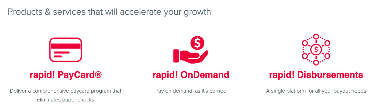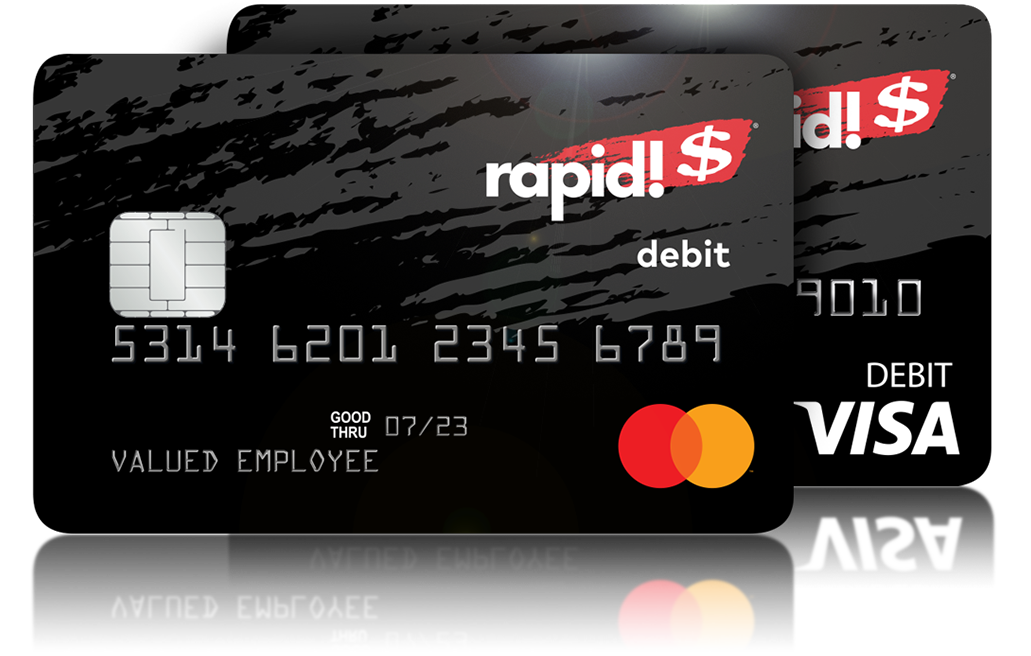 - Funds credited instantly or ACH to an existing account of the employee, a rapid! PayCard account or cash pickup at retail locations